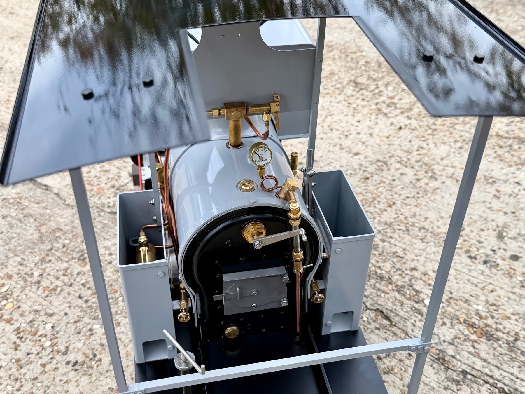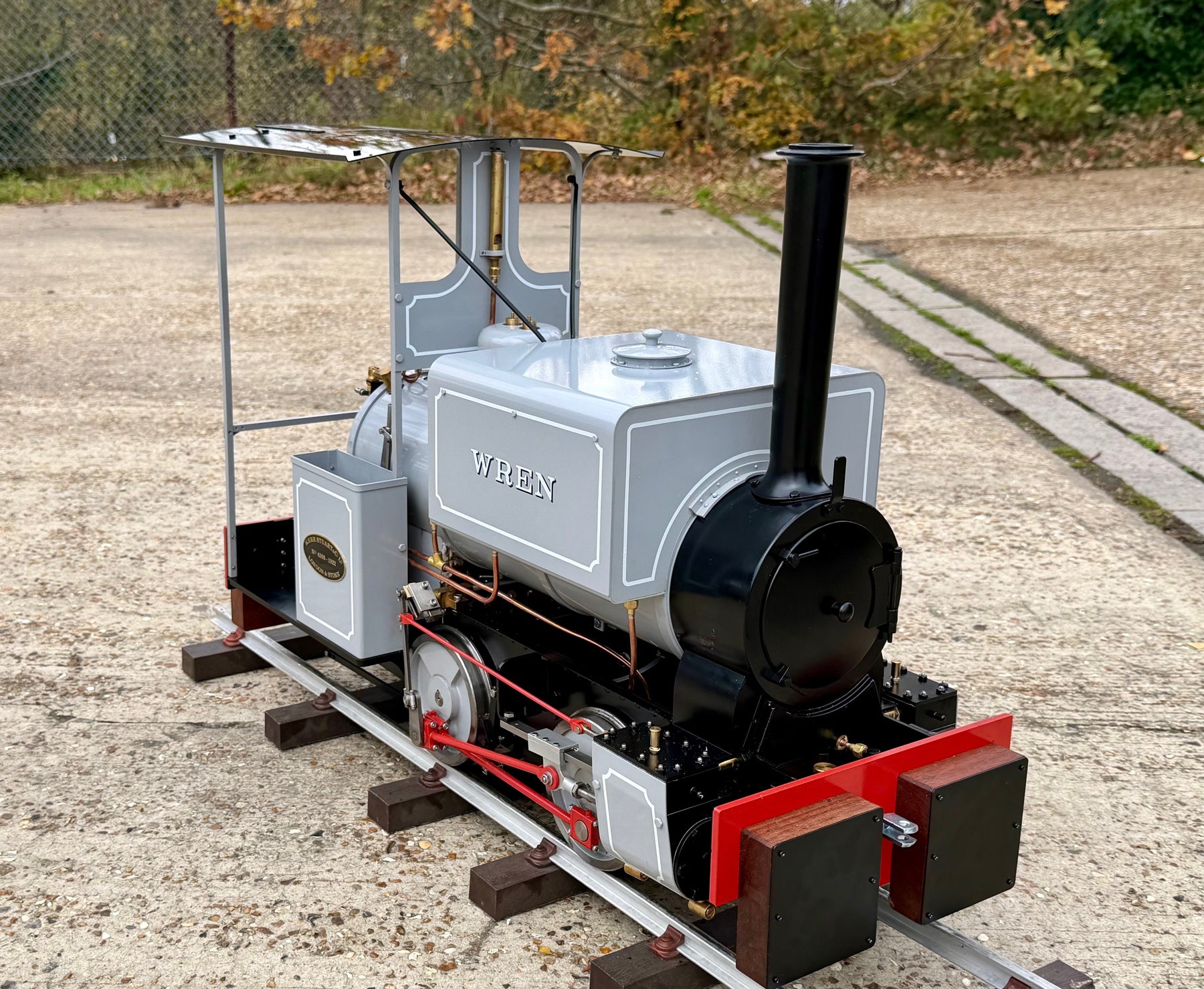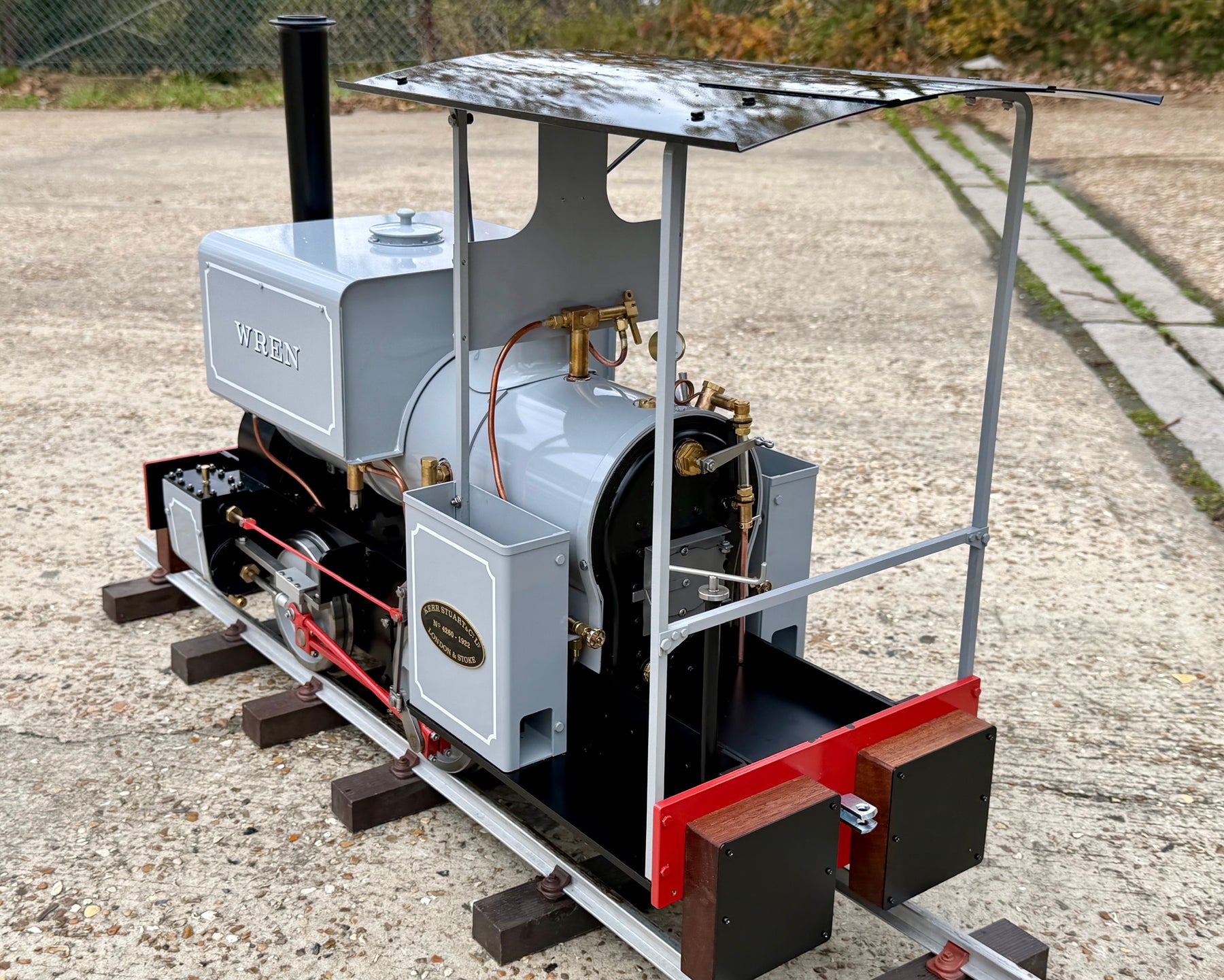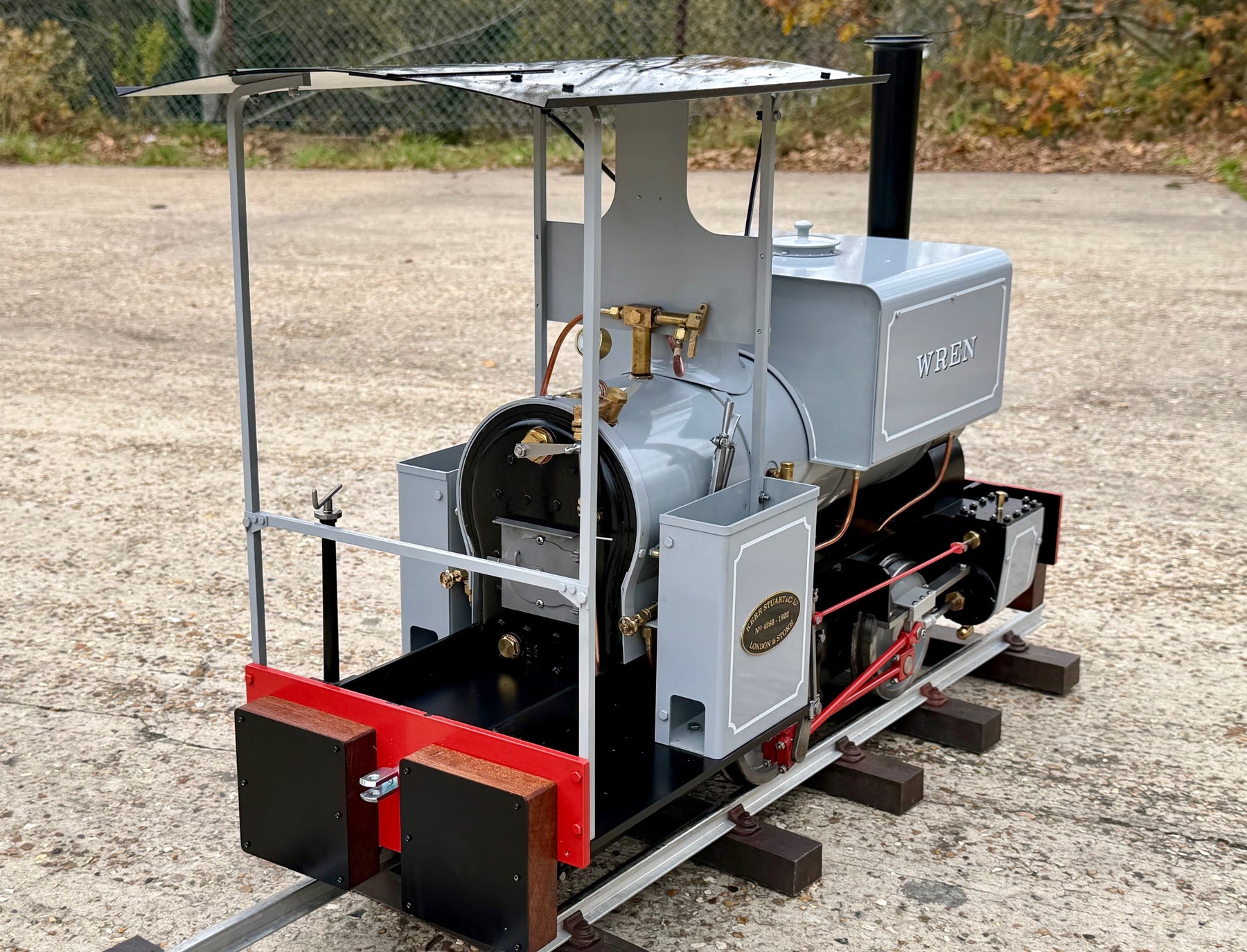 After Testing. The Wren production sample successfully completed its steam trials culminating in its final running this past weekend at the Leatherhead public running day. Where she successfully pulled passengers for 3 1/2" hours with two riding cars, drivers wagon and guard wagon, the maximum capacity was 10 persons, mixed children and adults. The firing was very easy with its deep firebox and although Andy did experience clinker she successfully kept up steam for the session. This loco should be a fantastic all round model!