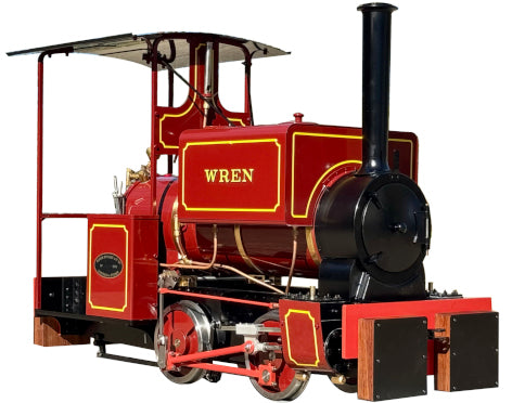 Wren is a 5" narrow gauge saddle tank locomotive with open cab and footplate mounted coal bunkers. These popular, diminutive but powerful locomotives were used widely in industry and because of this several survive today in preservation. This includes the well-known and much travelled 'PETER PAN', the equally well known 'PIXIE' and 'LORNA DOONE', a much-worked engine, saved from the scrap-man’s torch.